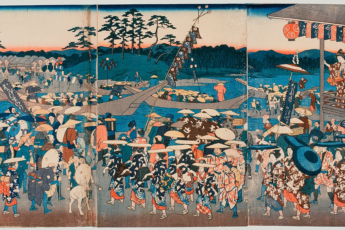 江戸時代、農民や町人にとって大旅行であり、2~3か月を要する、そしてそのために彼らは積み立てをして数名がその村あるいはその町の代表として伊勢神宮をお参りした。それは神社への参拝であったが、実際は旅行自体を楽しむことが目的でした。そうした旅行熱の高まりから旅行ガイドブックや数々の旅行グッズが生まれました。